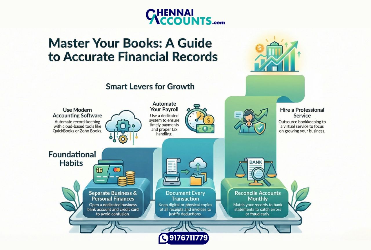Having accurate books does not need to be complicated. Proper systems, routine checks, and professional assistance ensure that any business can have transparency and financial stability. If you need expert guidance with bookkeeping that is maintained daily or yearly with a tax-ready report, Chennai Accounts delivers trustworthy services to ensure your finances are accurate, organized, and compliant — so that you can run your business with confidence.